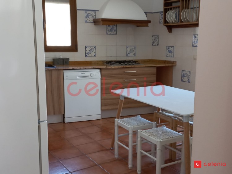 La cocina esta completamente equipada con electrodomésticos ( horno, microondas, frigorífico, lavadora , lavavajillas, encimera de cocina de gas, campana extractora humos, cafetera dolce gusto, tostadora, hervidor de agua) y menaje (cubertería, vajilla, sartenes, cazos y cacerolas, etc).