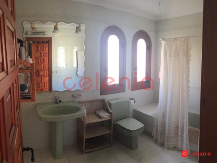 La casa de estilo mediterráneo se distribuye en dos plantas. A través del jardín accedemos a la planta baja y nos encontramos con el hall que comunica con el salón-comedor y la cocina, con espléndidas vistas al mar a través de los ventananles que dan al amplio porche y al jardín frontal donde se una piscina desbordante. A la izquierda del comedor accedemos a un dormitorio, un baño y a la escalera que nos conecta con la planta alta, formada por tres amplios dormitorios, todos ellos con fantásticas vistas al mar. El dormitorio principal cuenta con un baño en suite, existiendo otro baño que da servicio a los dos restantes dormitorios. Todos los dormitorios cuentan con amplios armarios empotrados.