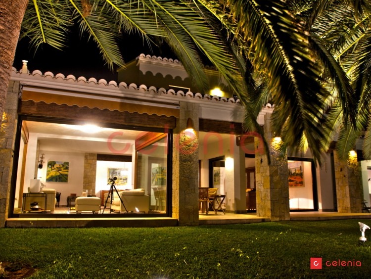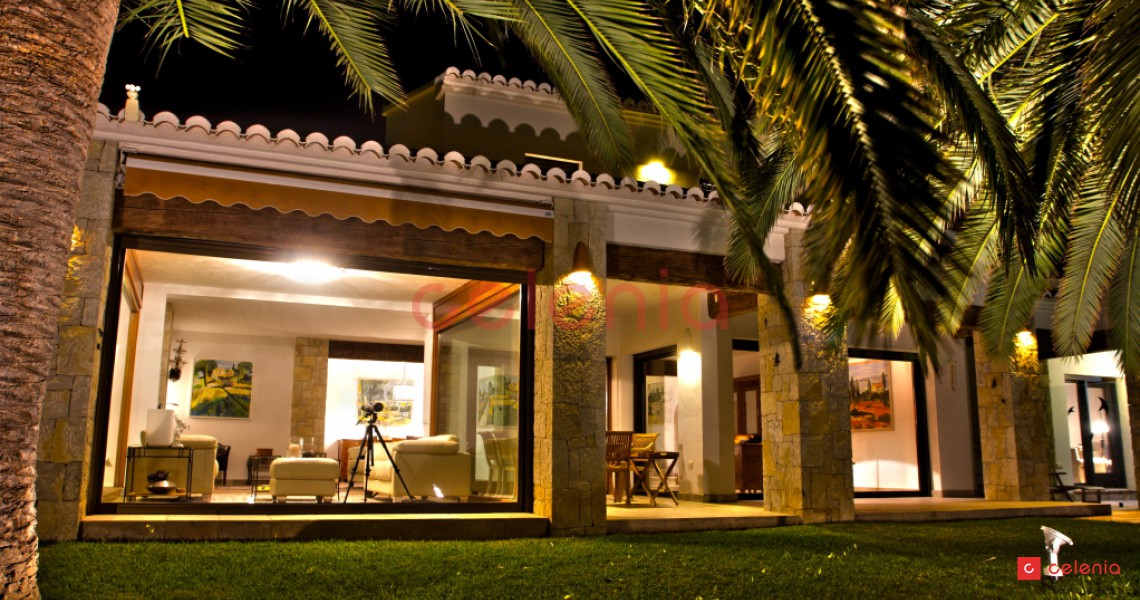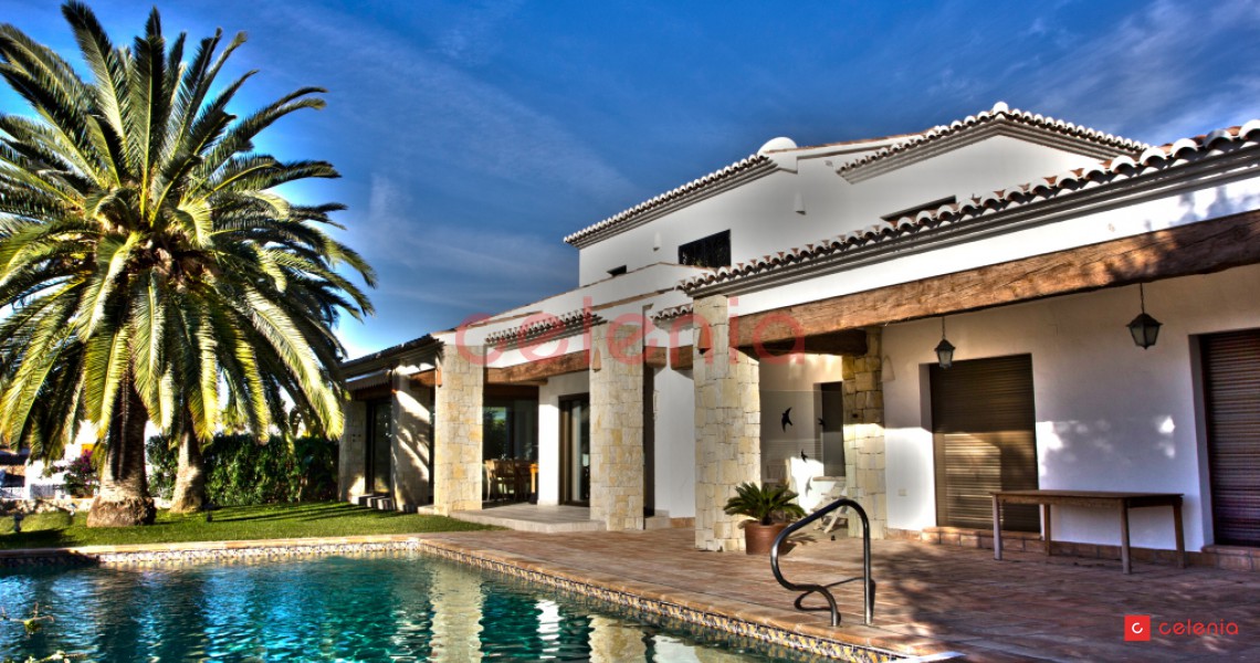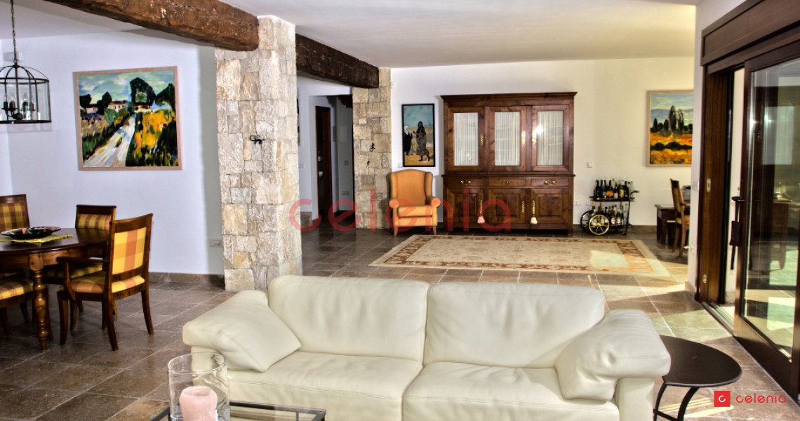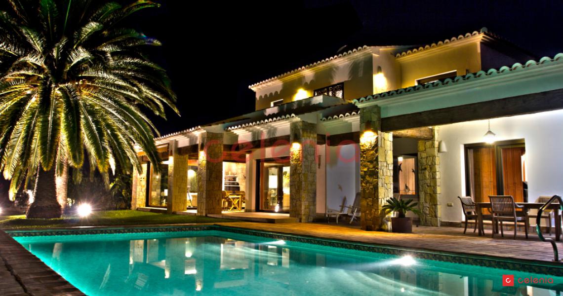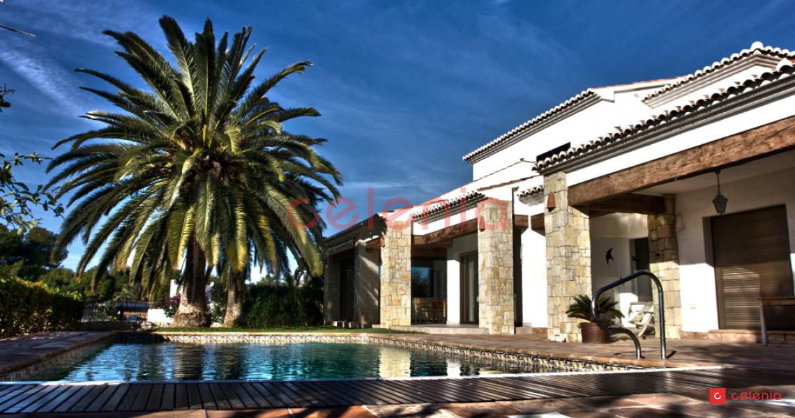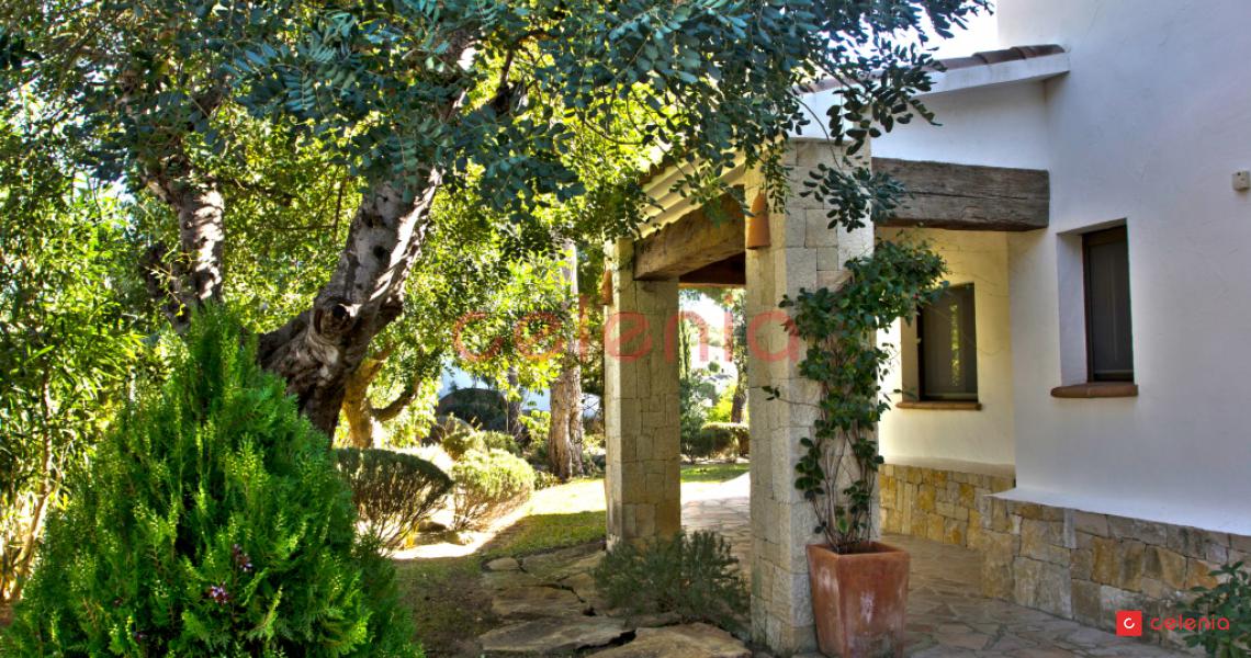 Vivienda unifamiliar de lujo construida por Inmobiliaria Celenia, con un extraordinario jardín, que combina detalles constructivos rústicos con otros de estilo contemporáneo.