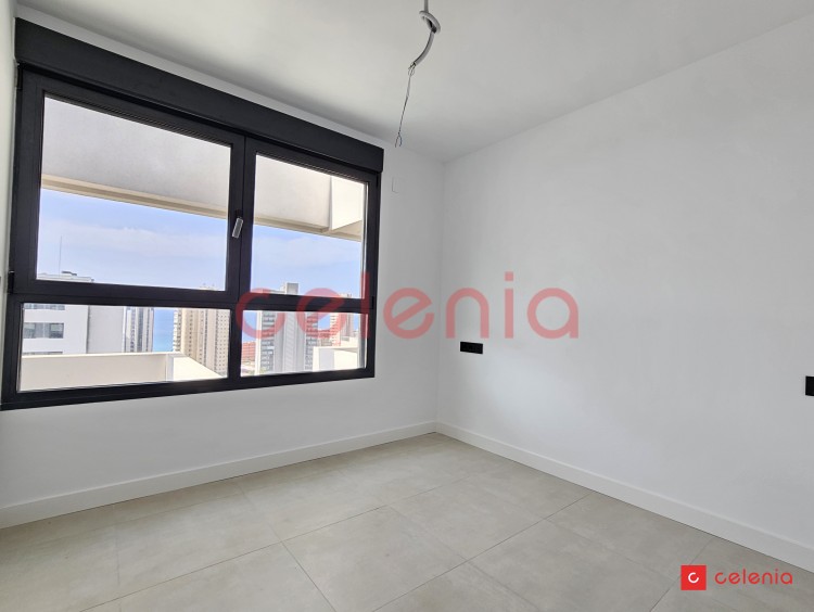 Este precioso apartamento en planta 15 dispone de 2 dormitorios, 2 baños (1 en-suite), amplio salón-comedor con acceso directo a la terraza con vistas panorámicas al mar, además tiene un solarium grande de 77.63m2. Se puede personalizar la vivienda a su gusto eligiendo entre varios materiales. Cada apartamento viene con su plaza de parking y trastero.