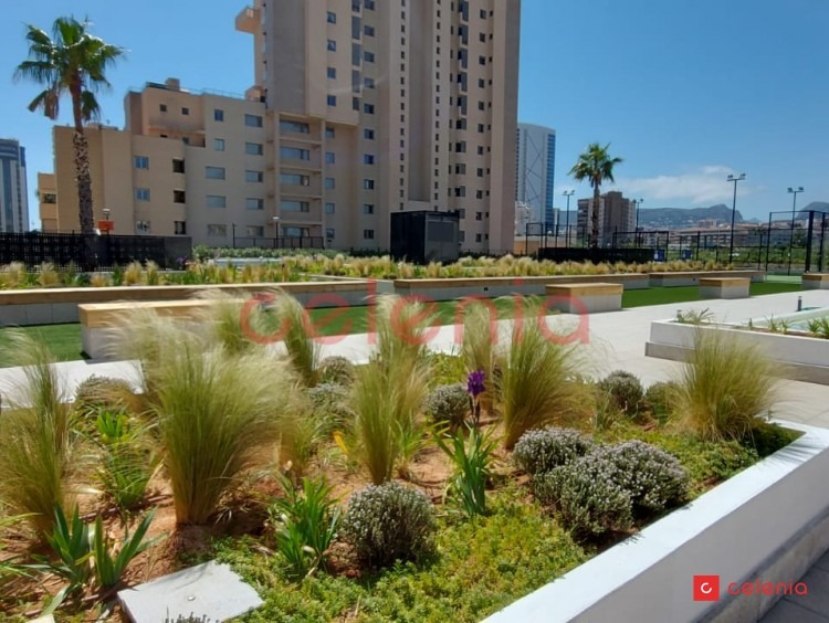 La zona comunitaria con jardines, piscina, pista de pádel y zona de recreo cubierta invita a quedarse después de un día en la playa. Para admirar el atardecer, en planta 9 hay un espacio común con vistas al mar, gimnasio y terraza.