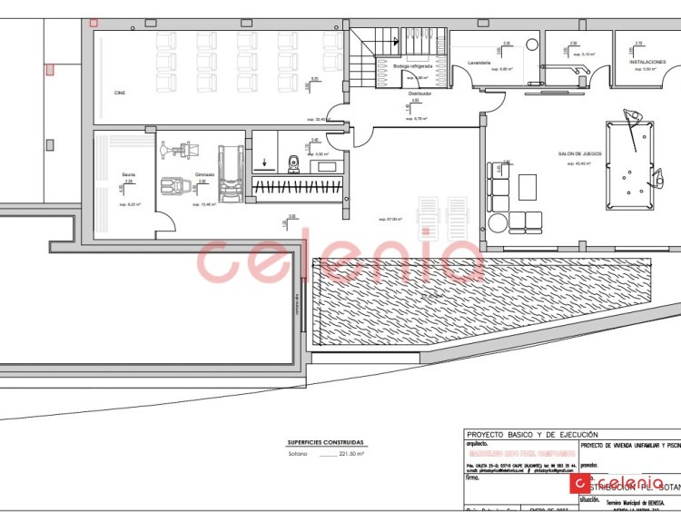En el sótano hay un gimnasio, cine en casa, sala de juegos, sauna, lavadero, un aseo de invitados y una piscina cubierta.