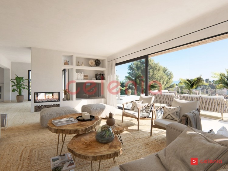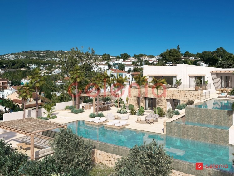 Villa de lujo en construcción con vistas al mar en la costa de Benissa (Costa Blanca, Alicante). Esta villa de estilo ibicenco con preciosas vistas al mar se encuentra a 400 metros de la Playa de Fustera, restaurantes y supermercado.