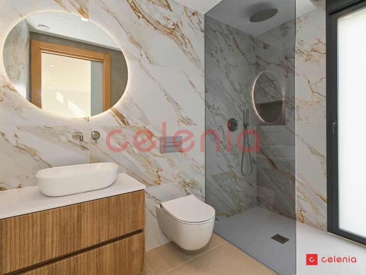 Planta baja: en esta planta se encuentra una cocina moderna y totalmente equipada abierta al espacioso y luminoso salón-comedor, desde aqui se accede a una terraza. Junto a la cocina se encuentra un lavadero. 2 dormitorios con baño en suite, 1 aseo de cortesia y terraza.
